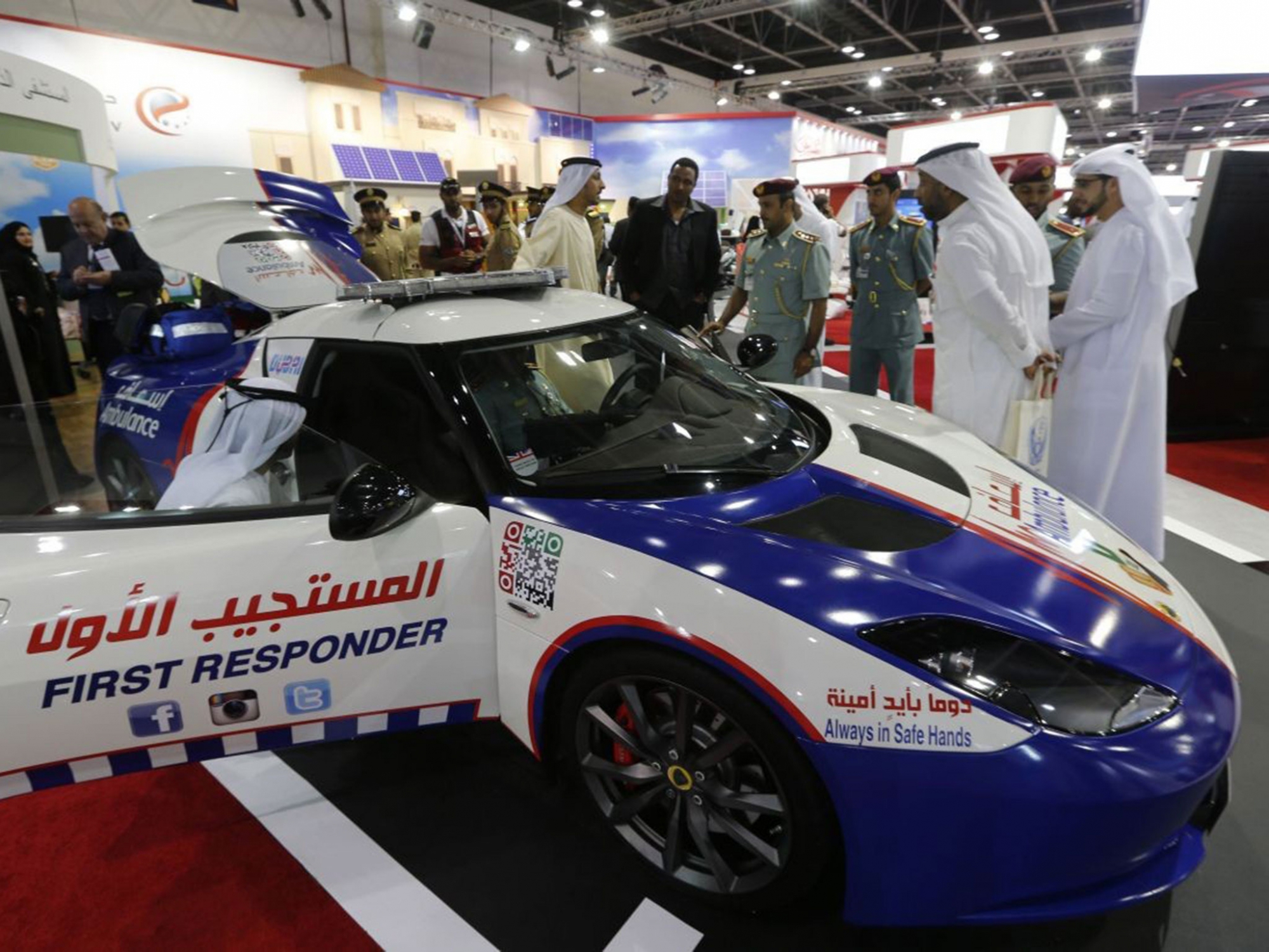 Представление быстрых автомобилей было сделано во время запуска трехмесячной кампании, проведенной в сотрудничестве с DCAS, полицией Дубая и дорожно-транспортным управлением (RTA) под лозунгом "Уступи дорогу… дай надежду".
