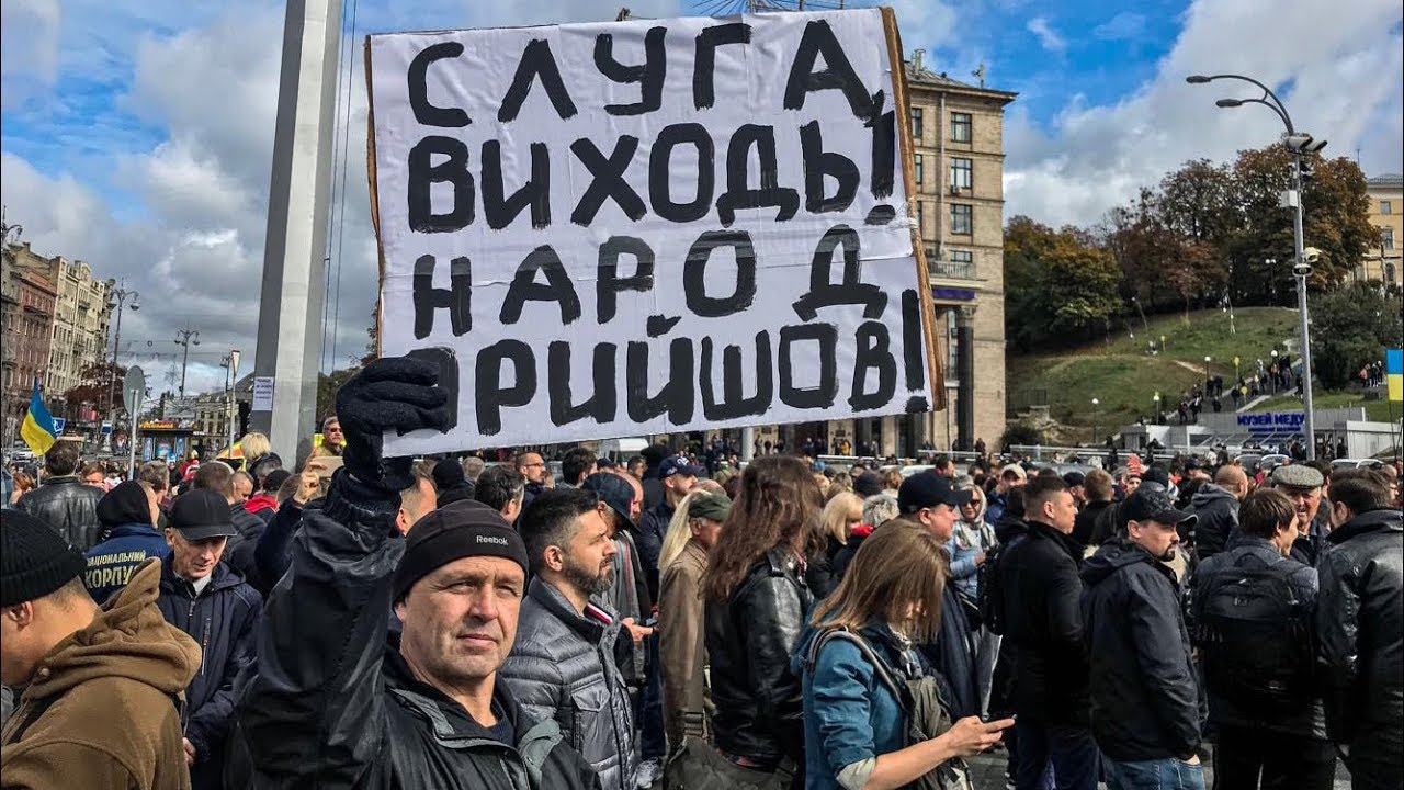 Люди продолжают скандировать Ни капитуляции, в их руках красно-черный, сине-желтый и крымскотатарские флаги. Позже участники начали скандировать Зелю вон!, Украина — не рояль и Импичмент. Об этом сообщает издание НВ.