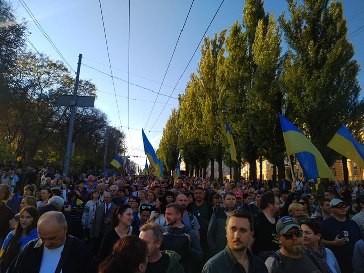 У Києві з нагоди Дня захисника України проходить марш проти капітуляції, в якому бере участь кілька тисяч чоловік.